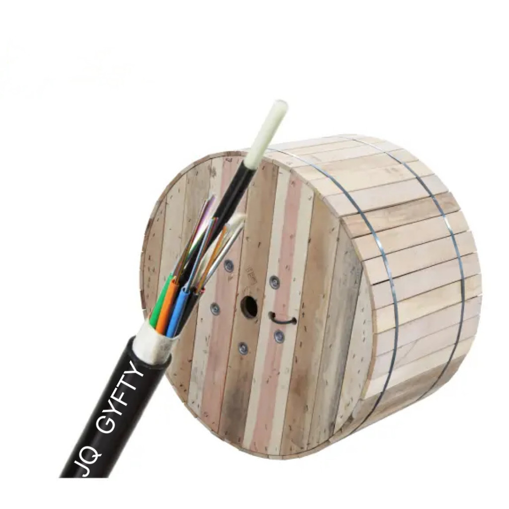 โครงสร้างของGYFTYคือการเคลือบเส้นใย 250μm ลงในท่อลอยแบบสูง (PBT) ท่อถูกเต็มด้วยสารประกอบการเติมกันน้ําบางครั้งเคลือบด้วยโพลีเอเธลีน (PE) สําหรับสายไฟเบอร์ที่มีจํานวนเส้นใยสูงท่อ PBT (และเครื่องเติม) ถูกวางรอบตัวของสมาชิกความแข็งแรงในรูปแบบที่คอมพัคต์และกลมช่องว่างระหว่างท่อถูกเต็มด้วยสารสกัดน้ําจากนั้นเคเบิลจะเสร็จด้วย PE heath.